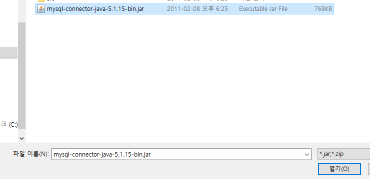 mysql connector 파일과 연결하기! (아래 사진 참조)