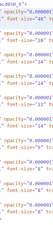 그래서 F12를 눌러서 코드를 확인해 보는데, 여기에서는 각 데이터마다 font size가 달랐다.