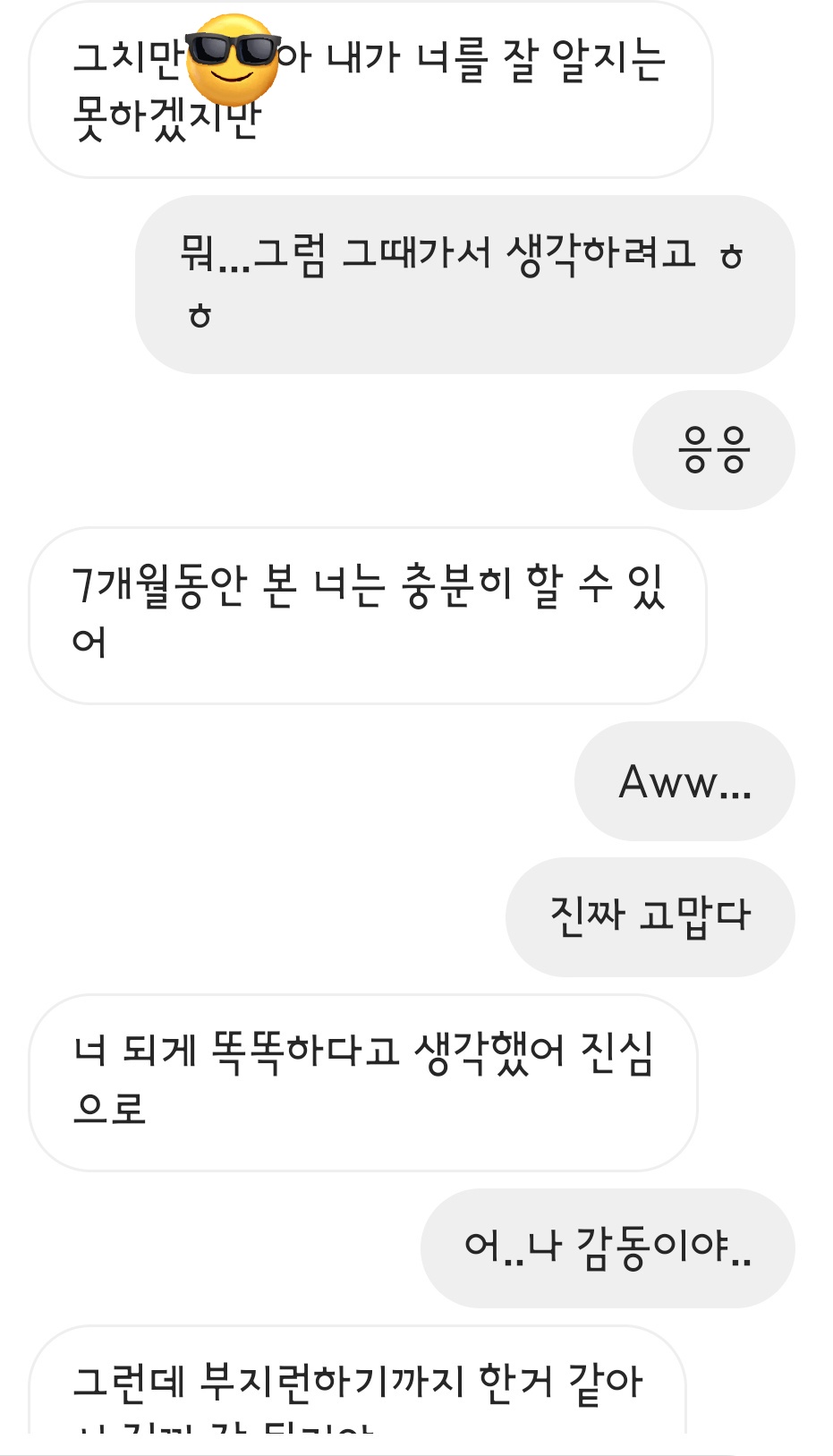 글 마무리는 오늘 오랜만에 국비 학원 동기와 대화를 나누다가 동기가 해준 디엠으로 마무리.