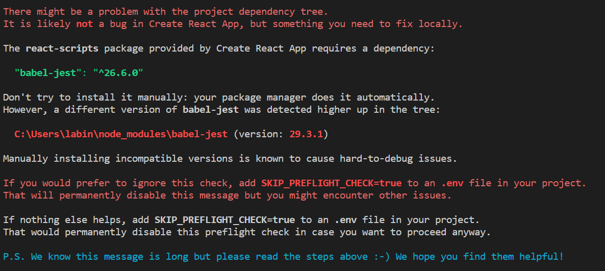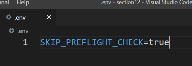 2. .env 파일 안에 SKIP_PREFLIGHT_CHECK=true를 추가하고 저장해주자.