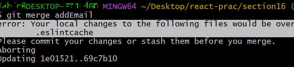 master 브랜치에 과제를 한 브랜치를 merge하려고 보니 .eslintcache에 관한 에러가 떴다.