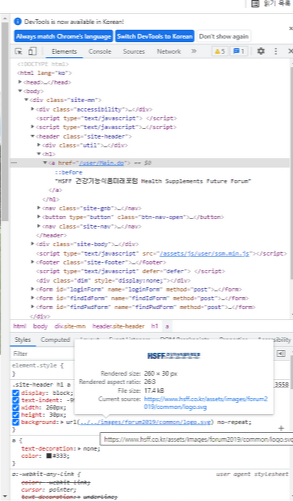 3.로고를 클릭하면 DevTools에 해당하는 정보가 뜬다.