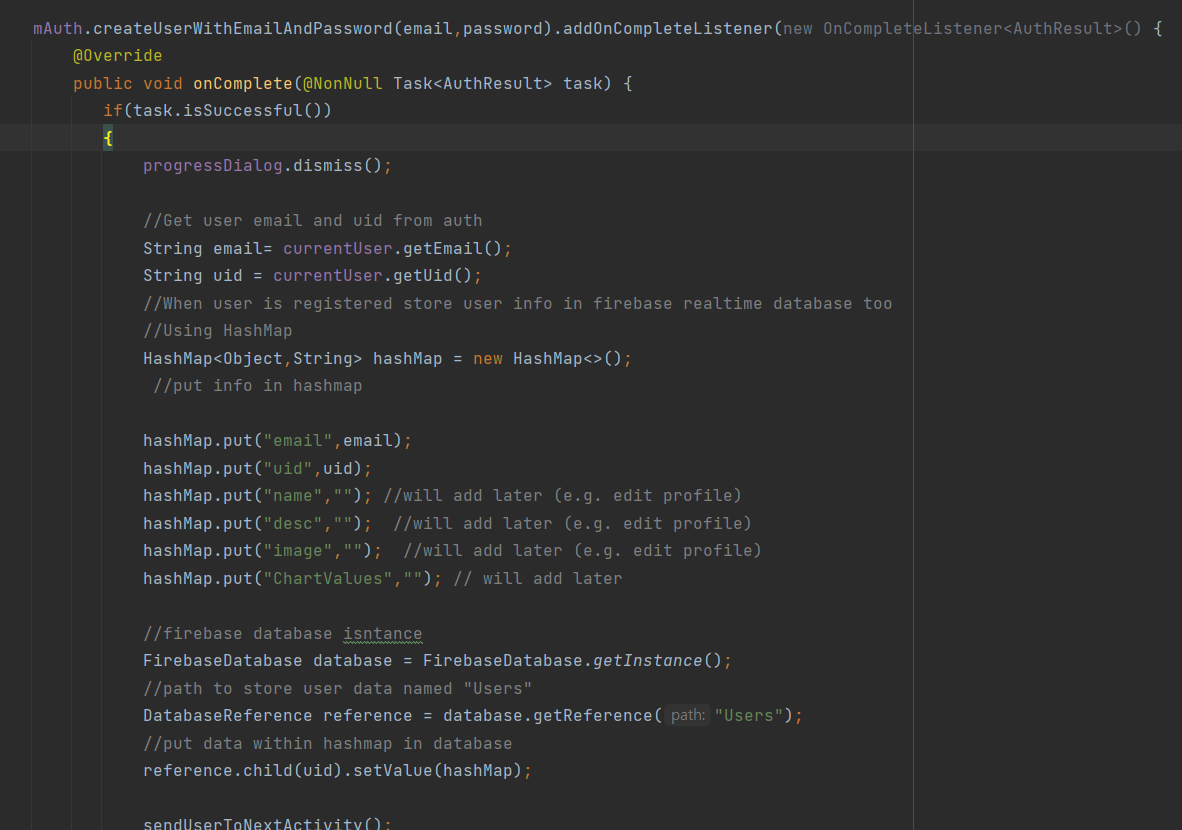 1.RegisterActivity와 MainActivity(로그인 액티비티)에 다음 문구를 추가한다.